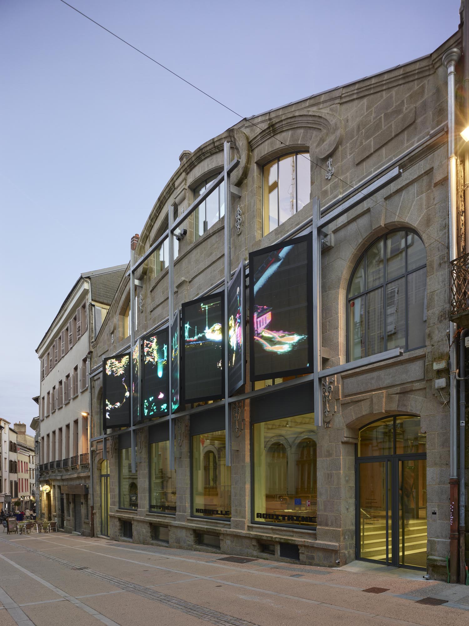 Réhabilité par le duo d’architectes français Jakob+MacFarlane, le nouveau bâtiment du Frac-Artothèque Nouvelle-Aquitaine prend place dans un ancien site industriel datant de la fin du XIXème siècle, au centre-ville de Limoges, 17 bis rue Charles Michels. Doté d’une verrière, cet espace d’une surface de 1900m2 profite d’une lumière naturelle permettant une présentation optimale des œuvres. Avec une façade connectée et une boîte immersive, ces deux équipements numériques sont au service de la création et des artistes. Ils permettent aux visiteurs de vivre une expérience de visite interactive hors-du-commun. Lieu emblématique de la scène artistique contemporaine, le Frac-Arto accueille des projets se développant en région, en France et dans le monde.